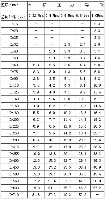 ※ 原料等級(jí)有PE63級(jí)、PE80級(jí)、PE100級(jí),不同的工程種類可以選擇不同等級(jí)原料的管材。